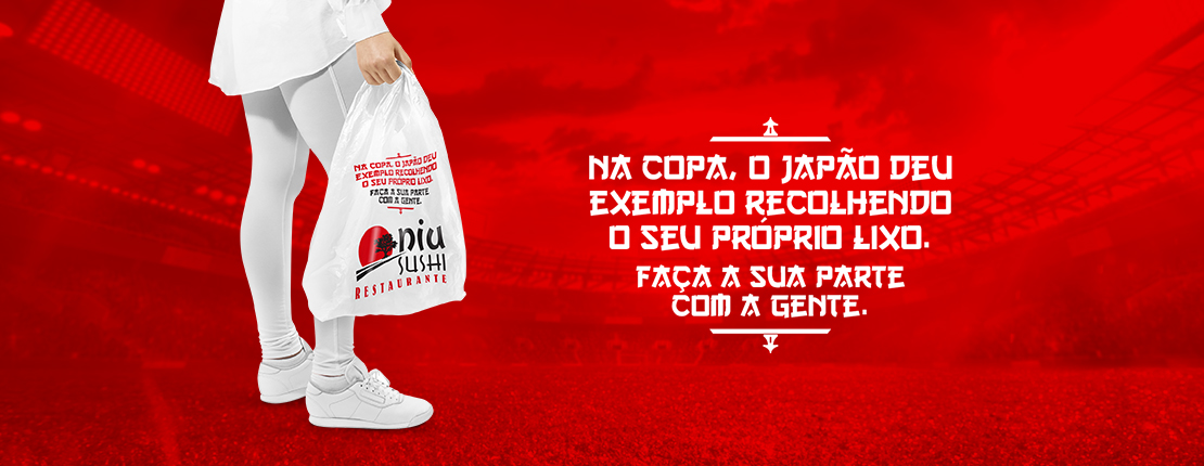 Quando o timing é certo, a campanha se torna ainda mais significativa. Foi essa a oportunidade que enxergamos durante a Copa do Mundo de 2014, quando a torcida do Japão deu o que falar ao recolher os lixos dos estádios. Aproveitamos o assunto para criar uma ação inesquecível com o Niu Sushi.