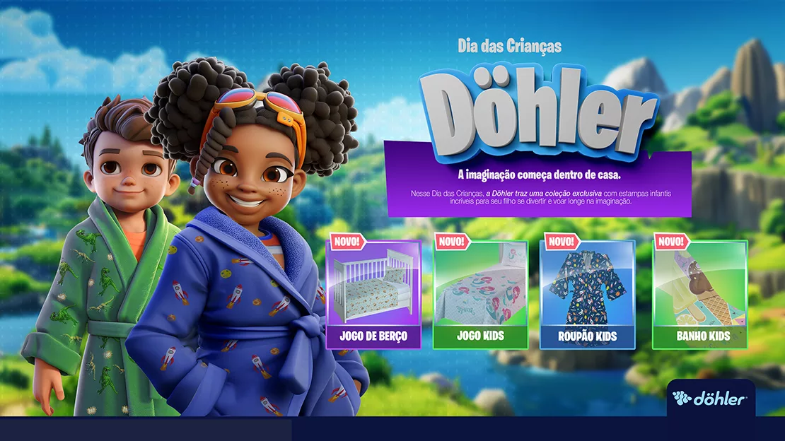 O Dia das Crianças é um data com grande potencial para o varejo. Para a Döhler Têxtil é uma grande oportunidade sazonal para potencializar as vendas, principalmente de produtos direcionados para o público infantil. Como segmentação de negócio, competir com o universo dos brinquedos e games eletrônicos - objetos de desejo da maioria das crianças -, torna-se desafiador.