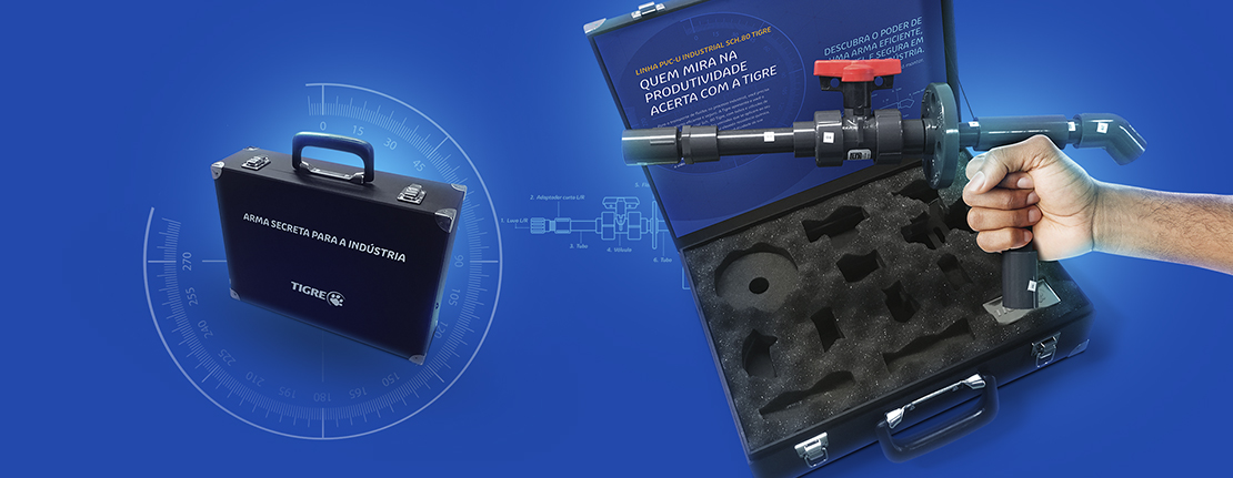 Criamos dispositivos especiais para os dois públicos. Para o varejo, uma maleta estilo James Bond, infalível contra toda baixa produtividade. Para a indústria, um surpreendente equipamento que convida você a ouvir (ou tentar ouvir) os ruídos Tigre Redux. Fomos muito além da estética e impactamos todos os públicos com eficácia.